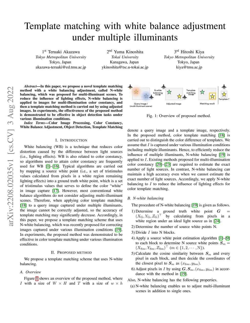 Template matching with white balance adjustment under multiple
