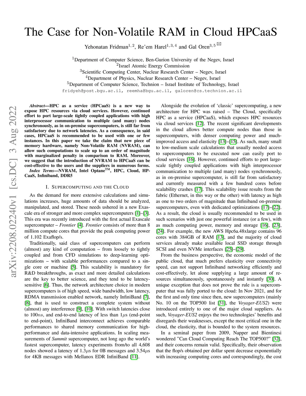 The Case for Non-Volatile RAM in Cloud HPCaaS