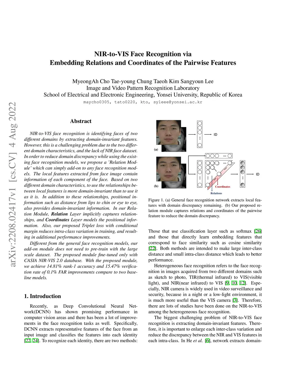 NIR-to-VIS Face Recognition via Embedding Relations and Coordinates of