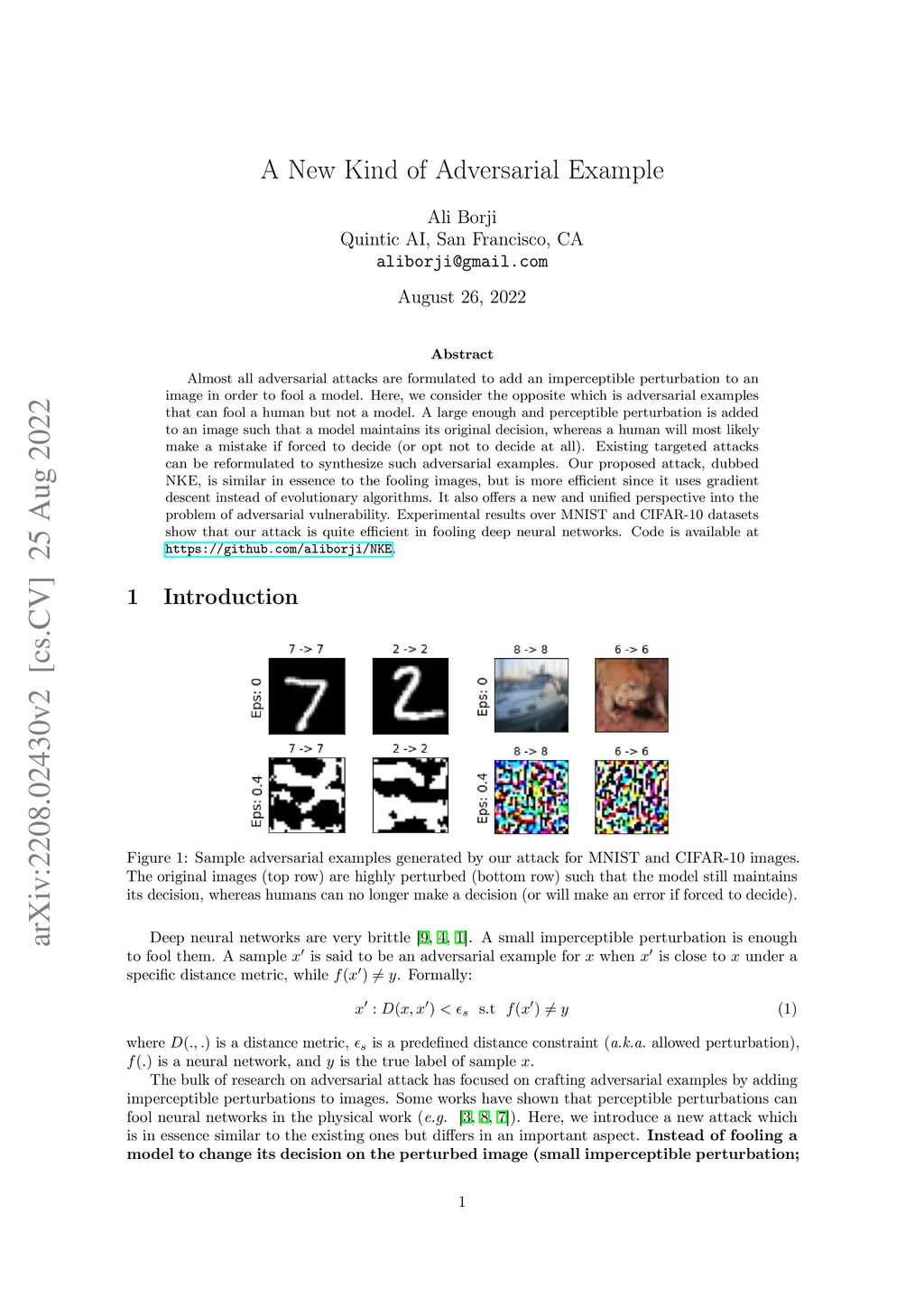 Almost all adversarial attacks are formulated to add an imperceptible perturbation to an image in order to fool a model. Here, we consider the opposite which is adversarial examples that can fool a human but not a model. A large enough and perceptible perturbation is added to an image such that a model maintains its original decision, whereas a human will most likely make a mistake if forced to decide (or opt not to decide at all). Existing targeted attacks can be reformulated to synthesize such adversarial examples. Our proposed attack, dubbed NKE, is similar in essence to the fooling images, but is more efficient since it uses gradient descent instead of evolutionary algorithms. It also offers a new and unified perspective into the problem of adversarial vulnerability. Experimental results over MNIST and CIFAR-10 datasets show that our attack is quite efficient in fooling deep neural networks. Code is available at https://github.com/aliborji/NKE.
