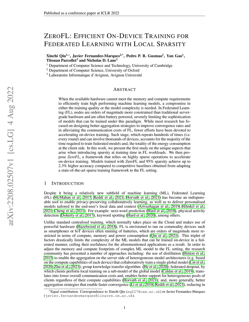 ZeroFL: Efficient On-Device Training for Federated Learning with Local
