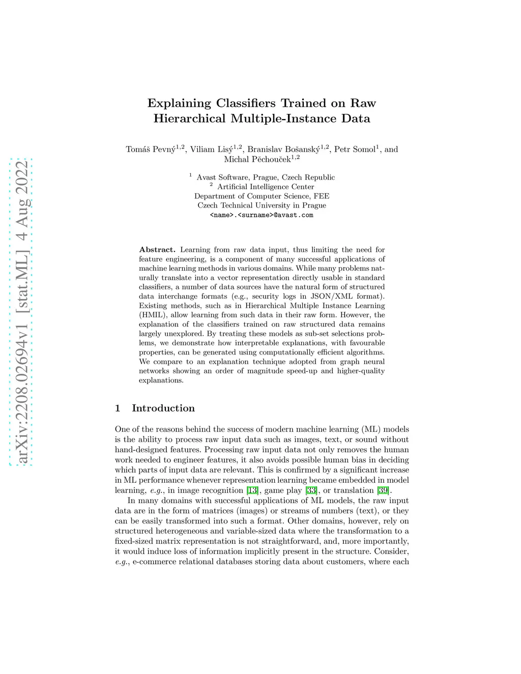 Learning from raw data input, thus limiting the need for feature engineering, is a component of many successful applications of machine learning methods in various domains. While many problems naturally translate into a vector representation directly usable in standard classifiers, a number of data sources have the natural form of structured data interchange formats (e.g., security logs in JSON/XML format). Existing methods, such as in Hierarchical Multiple Instance Learning (HMIL), allow learning from such data in their raw form. However, the explanation of the classifiers trained on raw structured data remains largely unexplored. By treating these models as sub-set selections problems, we demonstrate how interpretable explanations, with favourable properties, can be generated using computationally efficient algorithms. We compare to an explanation technique adopted from graph neural networks showing an order of magnitude speed-up and higher-quality explanations.
