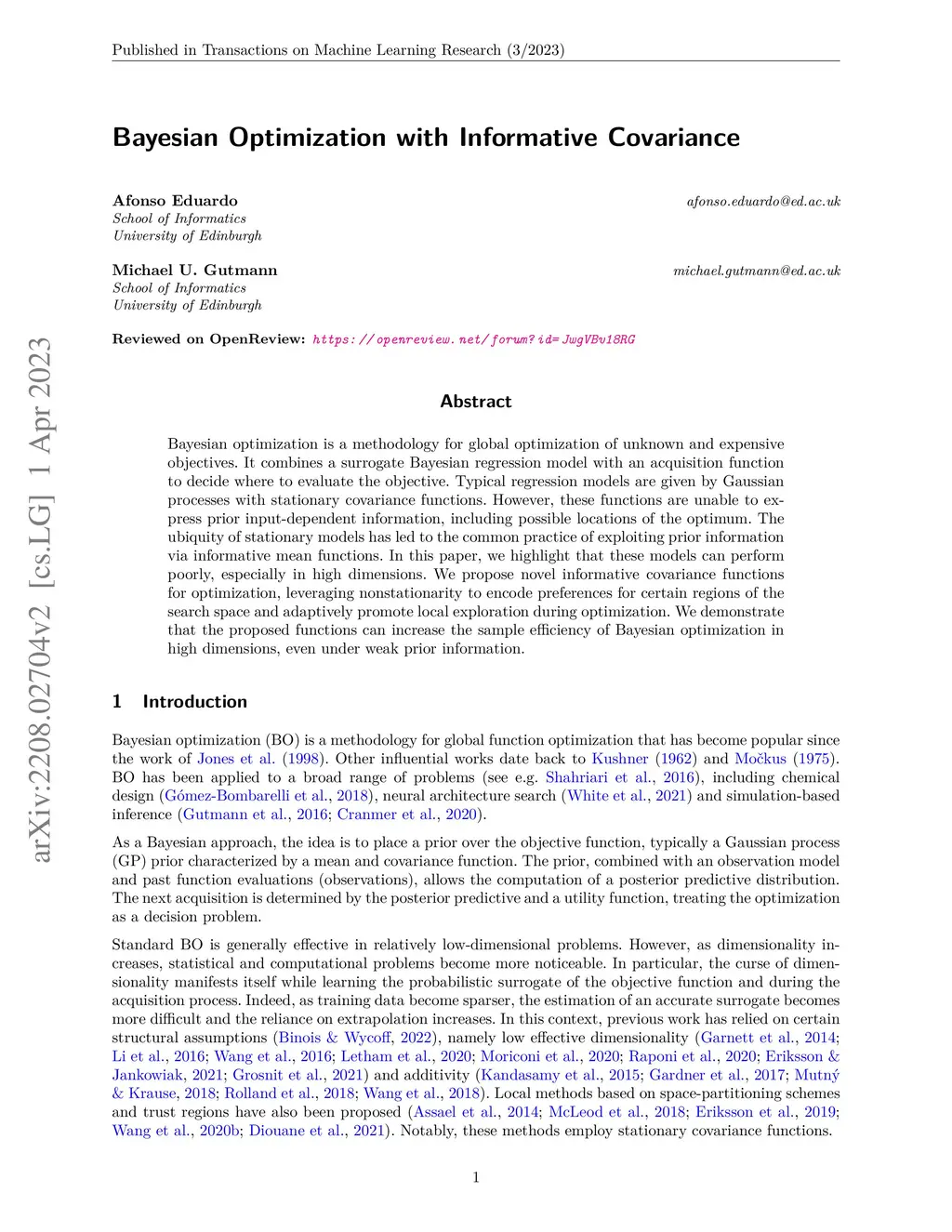 Bayesian optimization is a methodology for global optimization of unknown and expensive objectives. It combines a surrogate Bayesian regression model with an acquisition function to decide where to evaluate the objective. Typical regression models are given by Gaussian processes with stationary covariance functions. However, these functions are unable to express prior input-dependent information, including possible locations of the optimum. The ubiquity of stationary models has led to the common practice of exploiting prior information via informative mean functions. In this paper, we highlight that these models can perform poorly, especially in high dimensions. We propose novel informative covariance functions for optimization, leveraging nonstationarity to encode preferences for certain regions of the search space and adaptively promote local exploration during optimization. We demonstrate that the proposed functions can increase the sample efficiency of Bayesian optimization in high dimensions, even under weak prior information.
