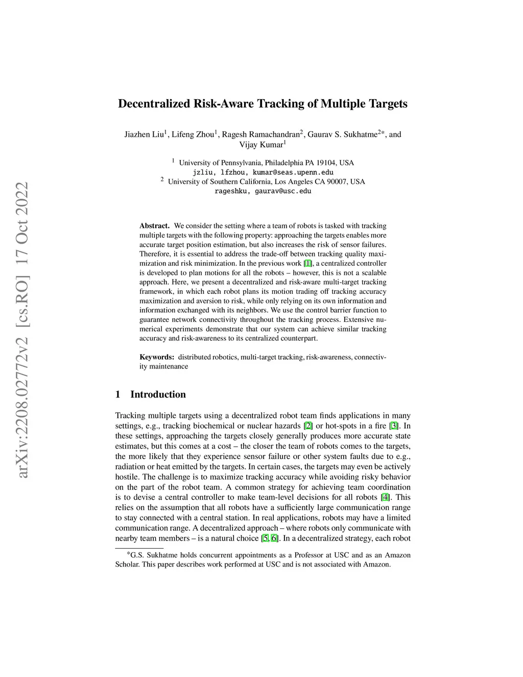 Decentralized Risk-Aware Tracking of Multiple Targets