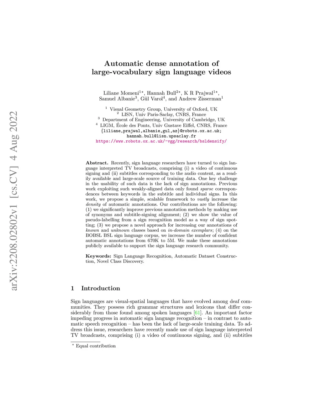 Automatic dense annotation of large-vocabulary sign language videos