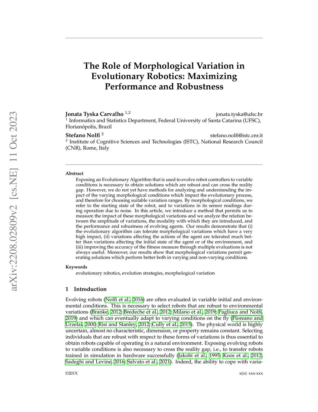The Role of Morphological Variation in Evolutionary Robotics: Maximizing