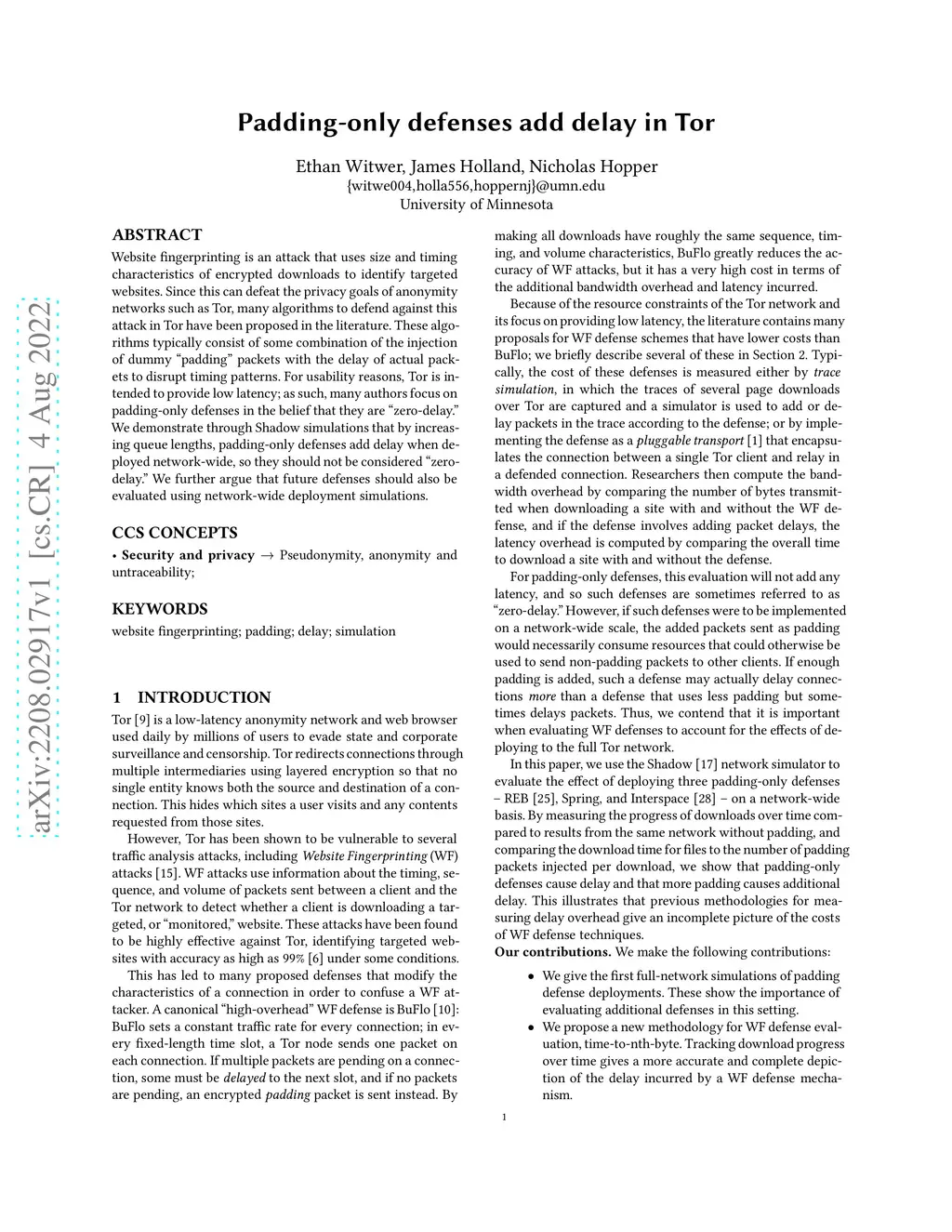 Padding-only defenses add delay in Tor