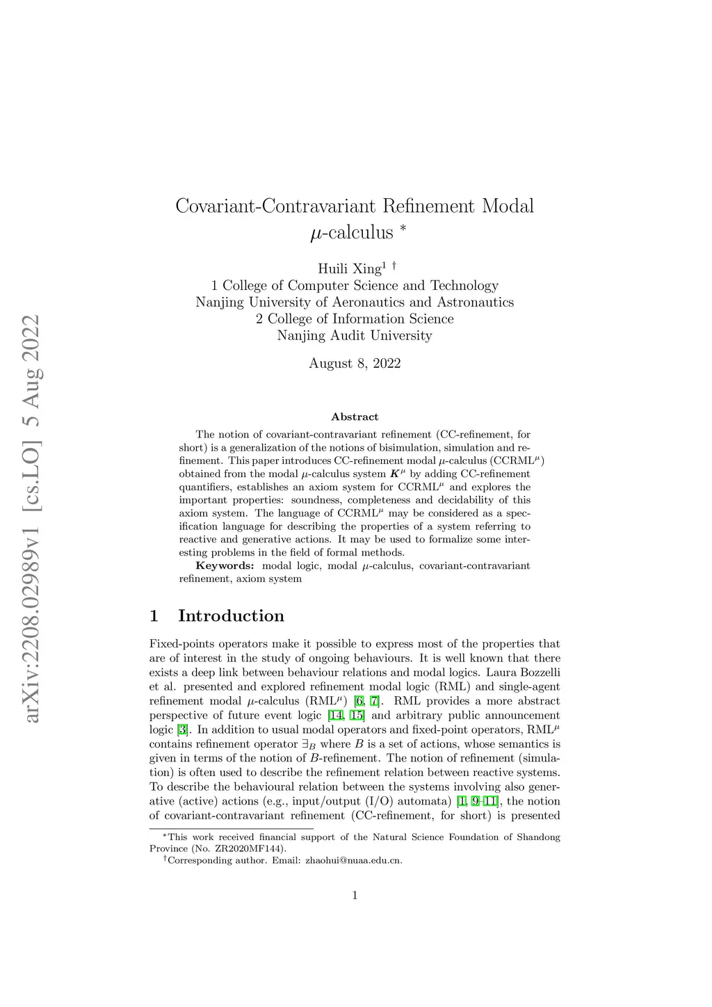 The notion of covariant-contravariant refinement (CC-refinement, for short) is a generalization of the notions of bisimulation, simulation and refinement. This paper introduces CC-refinement modal -calculus (CCRML) obtained from the modal -calculus system K by adding CC-refinement quantifiers, establishes an axiom system for CCRML and explores the important properties: soundness, completeness and decidability of this axiom system. The language of CCRML may be considered as a specification language for describing the properties of a system referring to reactive and generative actions. It may be used to formalize some interesting problems in the field of formal methods.