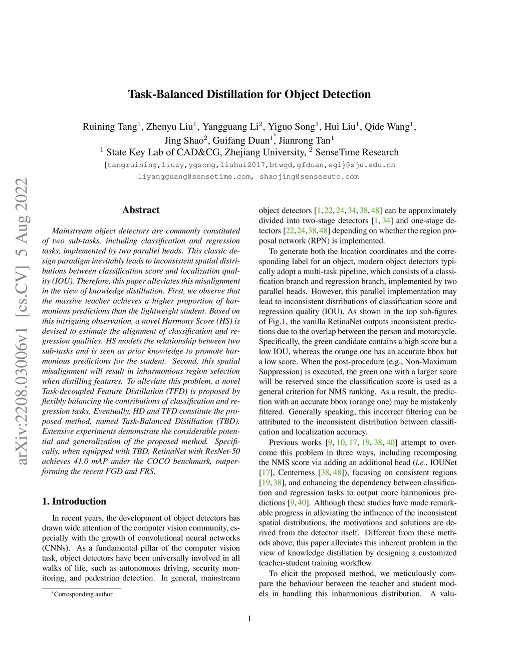 Task-Balanced Distillation for Object Detection
