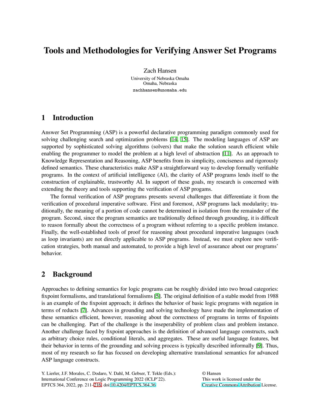Answer Set Programming (ASP) is a powerful declarative programming paradigm commonly used for solving challenging search and optimization problems. The modeling languages of ASP are supported by sophisticated solving algorithms (solvers) that make the solution search efficient while enabling the programmer to model the problem at a high level of abstraction. As an approach to Knowledge Representation and Reasoning, ASP benefits from its simplicity, conciseness and rigorously defined semantics. These characteristics make ASP a straightforward way to develop formally verifiable programs. In the context of artificial intelligence (AI), the clarity of ASP programs lends itself to the construction of explainable, trustworthy AI. In support of these goals, my research is concerned with extending the theory and tools supporting the verification of ASP progams.