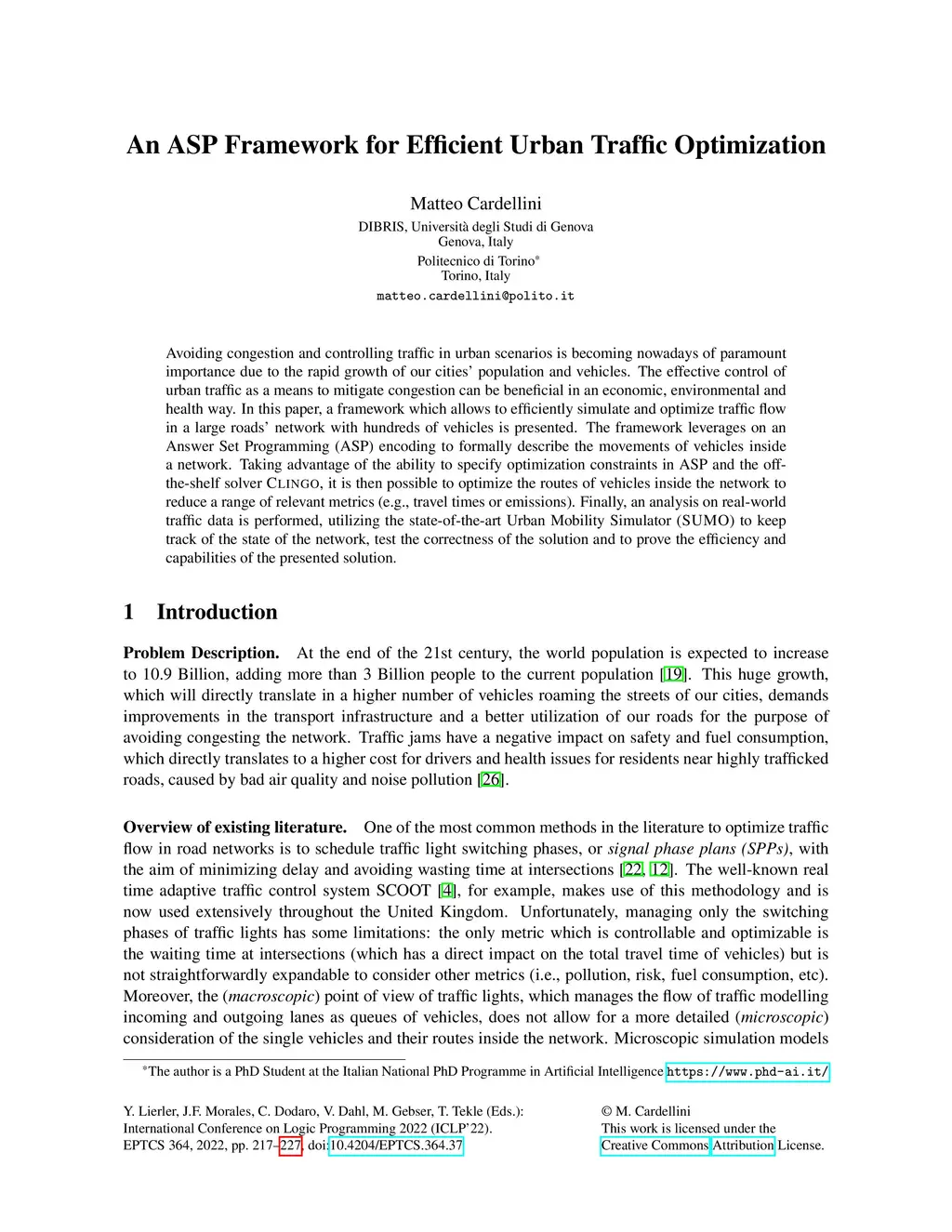 An ASP Framework for Efficient Urban Traffic Optimization