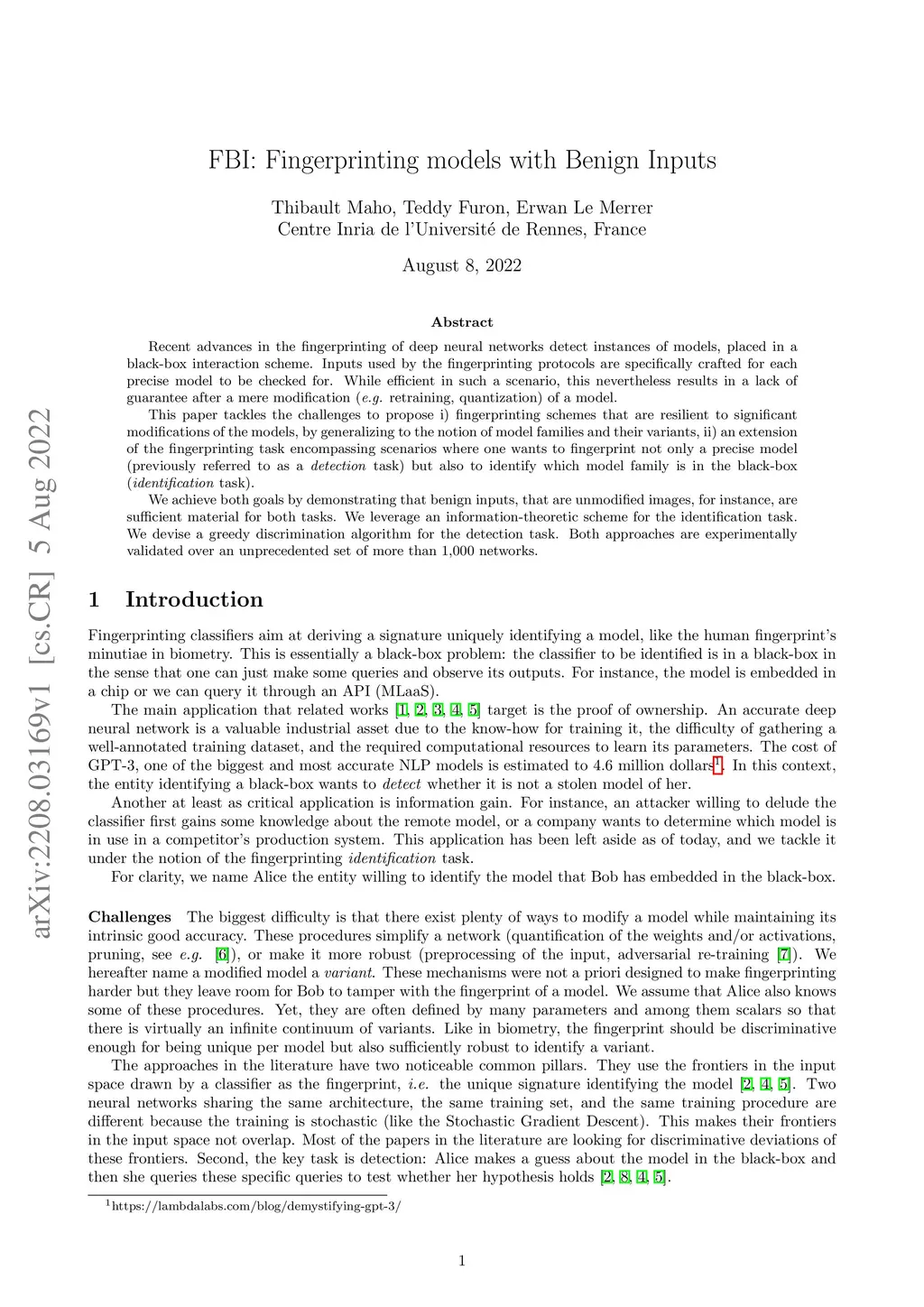 FBI: Fingerprinting models with Benign Inputs