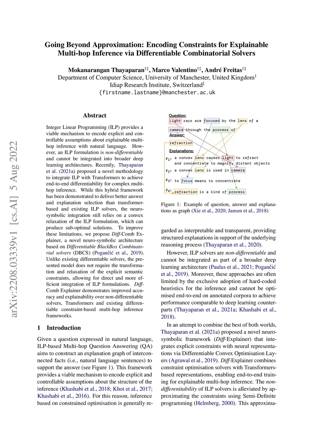 Multi-hop Inference via Differentiable Combinatorial Solvers