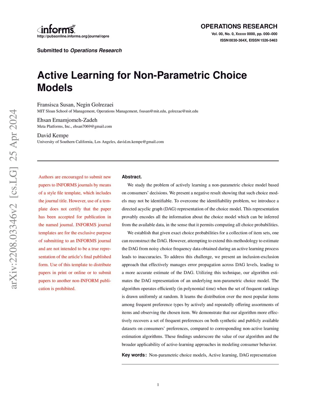 We study the problem of actively learning a non-parametric choice model based on consumers' decisions. We present a negative result showing that such choice models may not be identifiable. To overcome the identifiability problem, we introduce a directed acyclic graph (DAG) representation of the choice model. This representation provably encodes all the information about the choice model which can be inferred from the available data, in the sense that it permits computing all choice probabilities. We establish that given exact choice probabilities for a collection of item sets, one can reconstruct the DAG. However, attempting to extend this methodology to estimate the DAG from noisy choice frequency data obtained during an active learning process leads to inaccuracies. To address this challenge, we present an inclusion-exclusion approach that effectively manages error propagation across DAG levels, leading to a more accurate estimate of the DAG. Utilizing this technique, our algorithm estimates the DAG representation of an underlying non-parametric choice model. The algorithm operates efficiently (in polynomial time) when the set of frequent rankings is drawn uniformly at random. It learns the distribution over the most popular items among frequent preference types by actively and repeatedly offering assortments of items and observing the chosen item. We demonstrate that our algorithm more effectively recovers a set of frequent preferences on both synthetic and publicly available datasets on consumers' preferences, compared to corresponding non-active learning estimation algorithms. These findings underscore the value of our algorithm and the broader applicability of active-learning approaches in modeling consumer behavior.