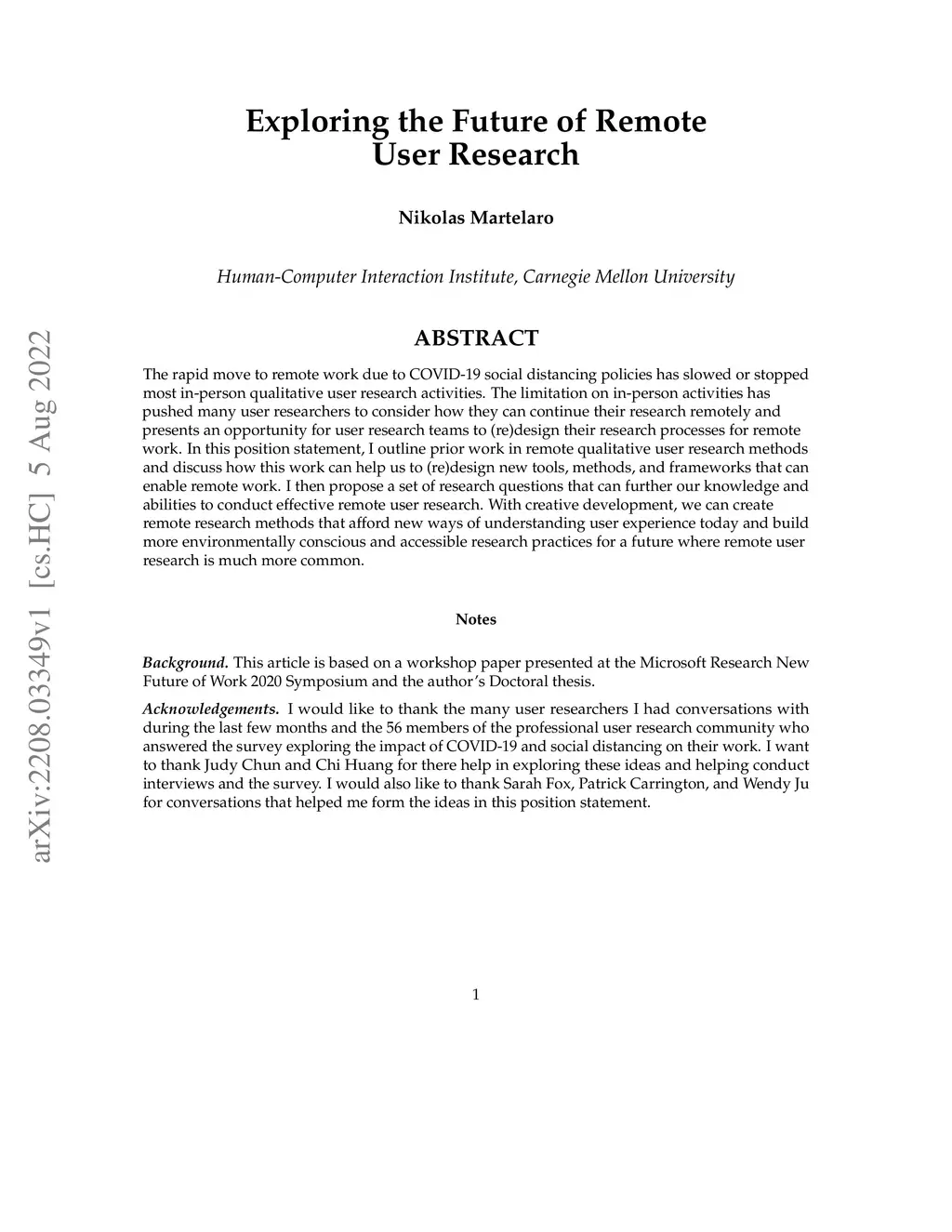 The rapid move to remote work due to COVID-19 social distancing policies has slowed or stopped most in-person qualitative user research activities. The limitation on in-person activities has pushed many user researchers to consider how they can continue their research remotely and presents an opportunity for user research teams to (re)design their research processes for remote work. In this position statement, I outline prior work in remote qualitative user research methods and discuss how this work can help us to (re)design new tools, methods, and frameworks that can enable remote work. I then propose a set of research questions that can further our knowledge and abilities to conduct effective remote user research. With creative development, we can create remote research methods that afford new ways of understanding user experience today and build more environmentally conscious and accessible research practices for a future where remote user research is much more common.