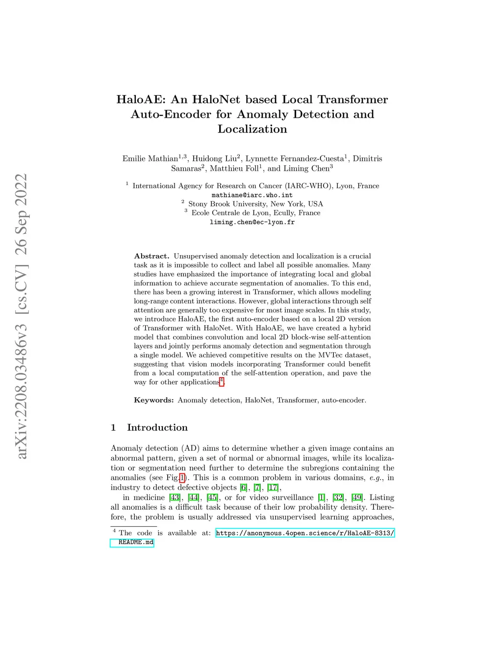 HaloAE: An HaloNet based Local Transformer Auto-Encoder for Anomaly