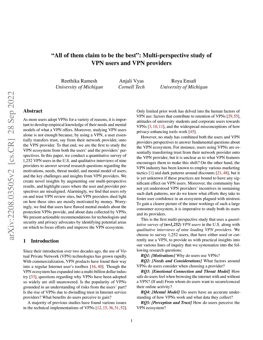 "All of them claim to be the best": Multi-perspective study of VPN users