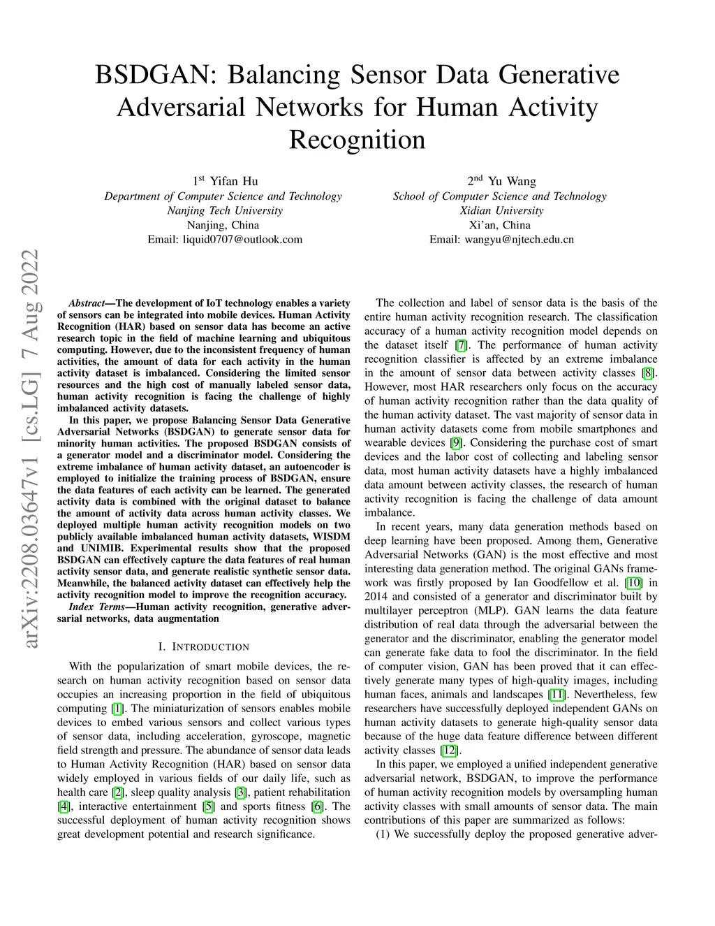BSDGAN: Balancing Sensor Data Generative Adversarial Networks for Human