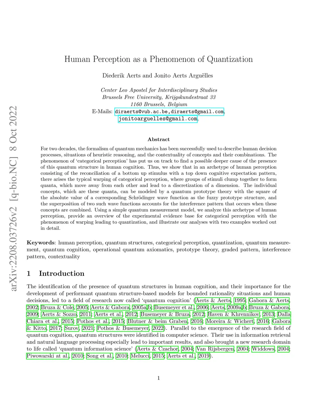Human Perception as a Phenomenon of Quantization