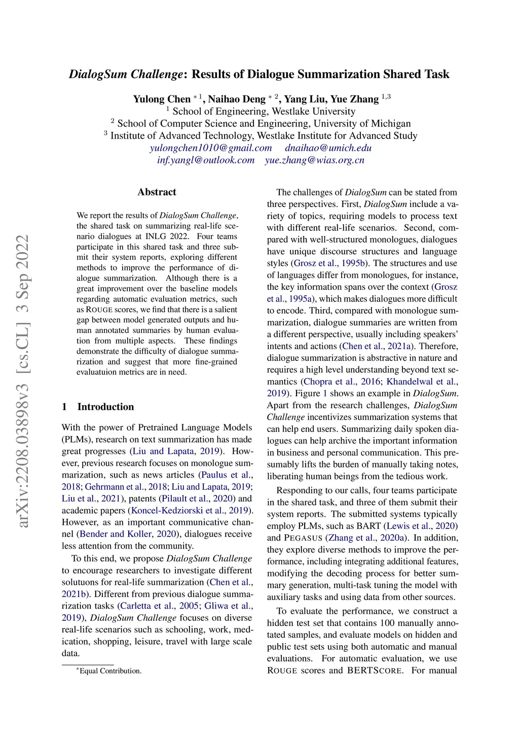 DialogSum Challenge: Results of the Dialogue Summarization Shared Task