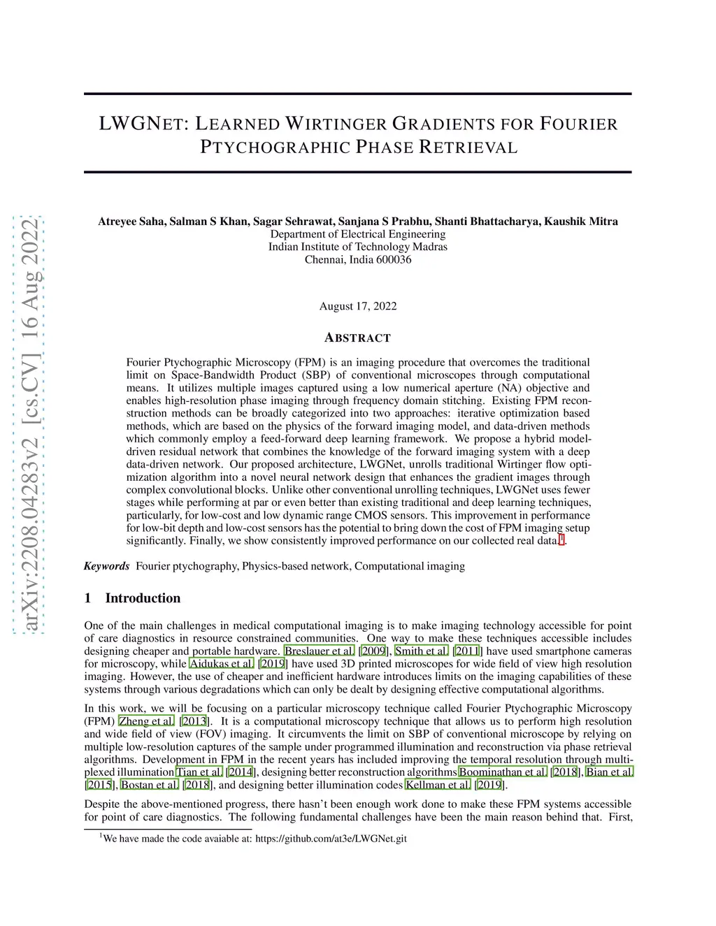 Fourier Ptychographic Microscopy (FPM) is an imaging procedure that overcomes the traditional limit on Space-Bandwidth Product (SBP) of conventional microscopes through computational means. It utilizes multiple images captured using a low numerical aperture (NA) objective and enables high-resolution phase imaging through frequency domain stitching. Existing FPM reconstruction methods can be broadly categorized into two approaches: iterative optimization based methods, which are based on the physics of the forward imaging model, and data-driven methods which commonly employ a feed-forward deep learning framework. We propose a hybrid model-driven residual network that combines the knowledge of the forward imaging system with a deep data-driven network. Our proposed architecture, LWGNet, unrolls traditional Wirtinger flow optimization algorithm into a novel neural network design that enhances the gradient images through complex convolutional blocks. Unlike other conventional unrolling techniques, LWGNet uses fewer stages while performing at par or even better than existing traditional and deep learning techniques, particularly, for low-cost and low dynamic range CMOS sensors. This improvement in performance for low-bit depth and low-cost sensors has the potential to bring down the cost of FPM imaging setup significantly. Finally, we show consistently improved performance on our collected real data.