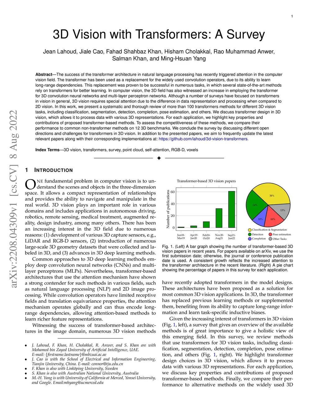3D Vision with Transformers: A Survey