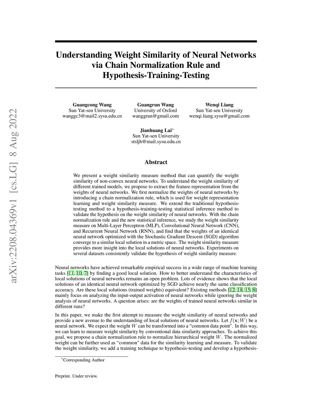 Understanding Weight Similarity of Neural Networks via Chain