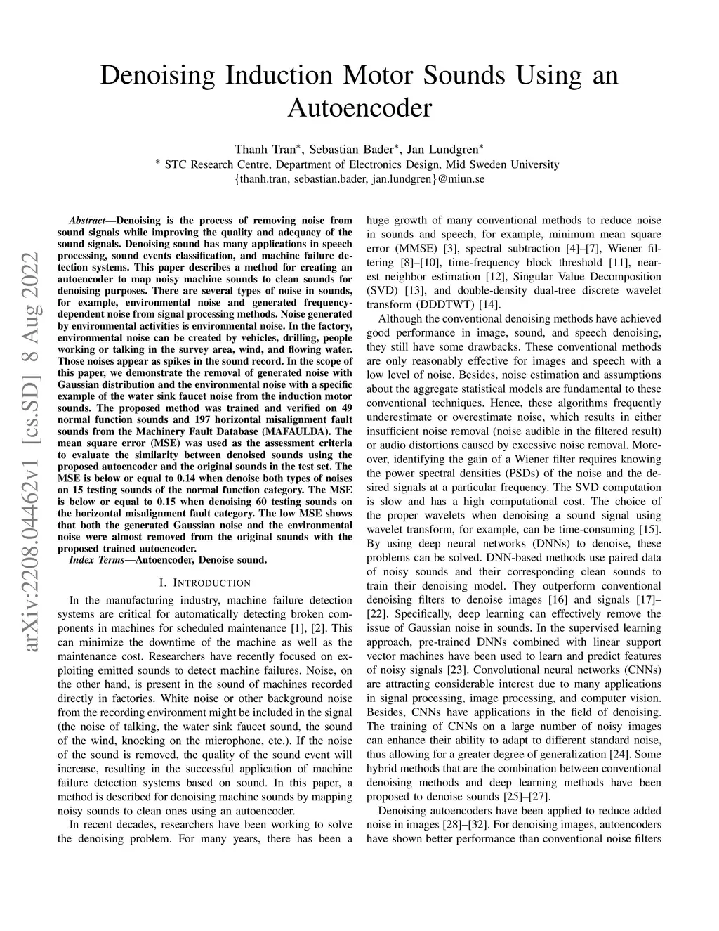 Denoising Induction Motor Sounds Using an Autoencoder