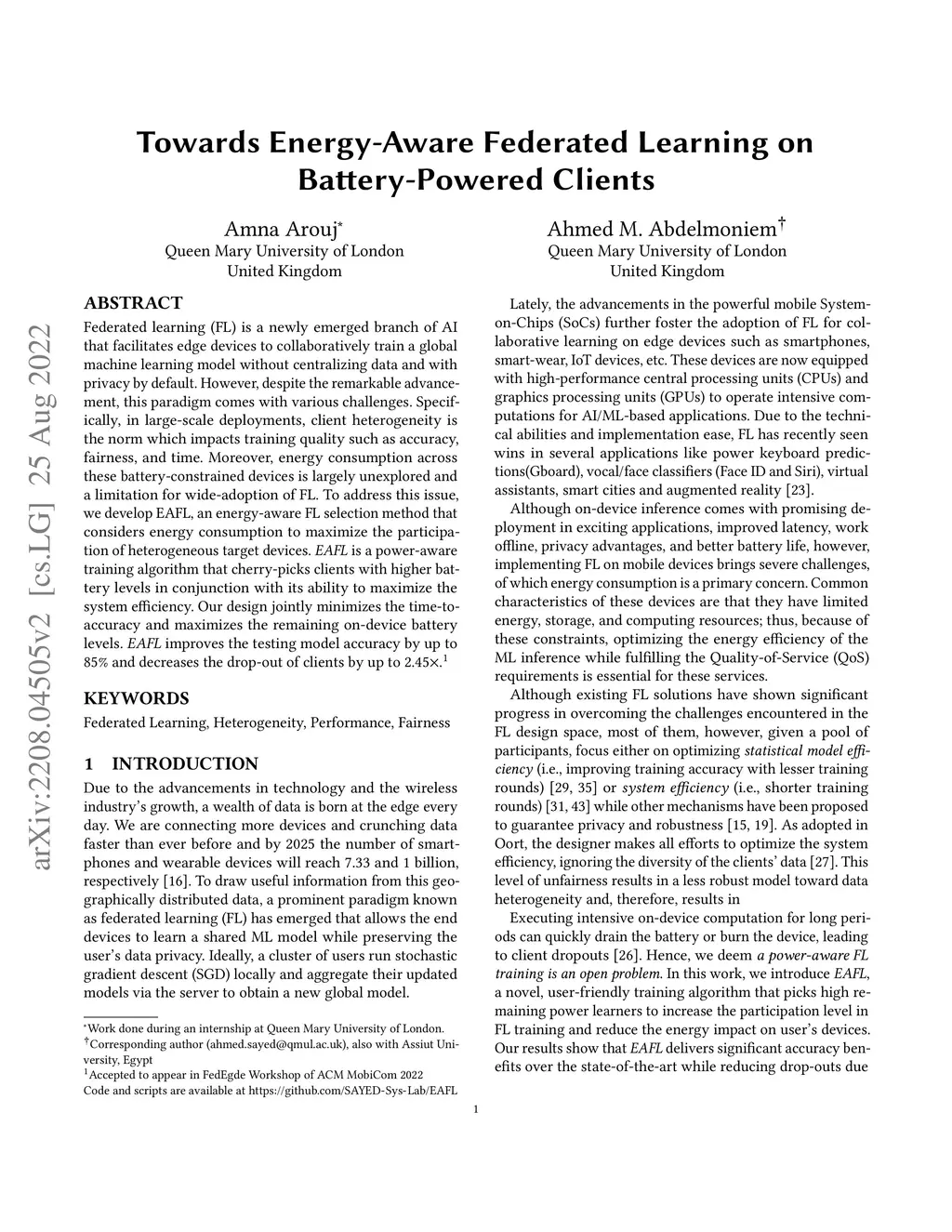 Towards Energy-Aware Federated Learning on Battery-Powered Clients
