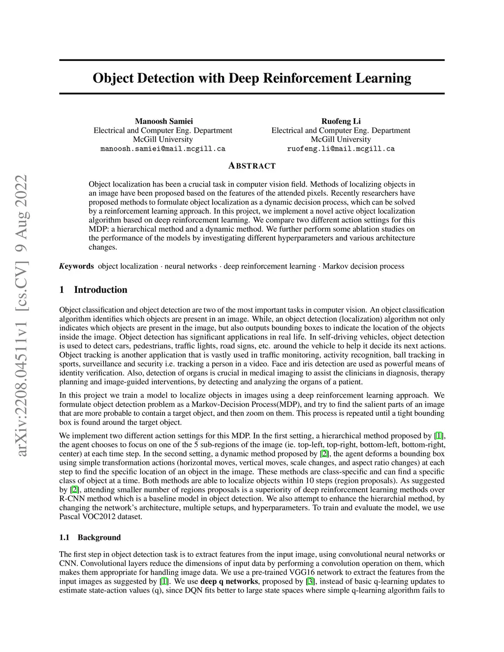 Object Detection with Deep Reinforcement Learning