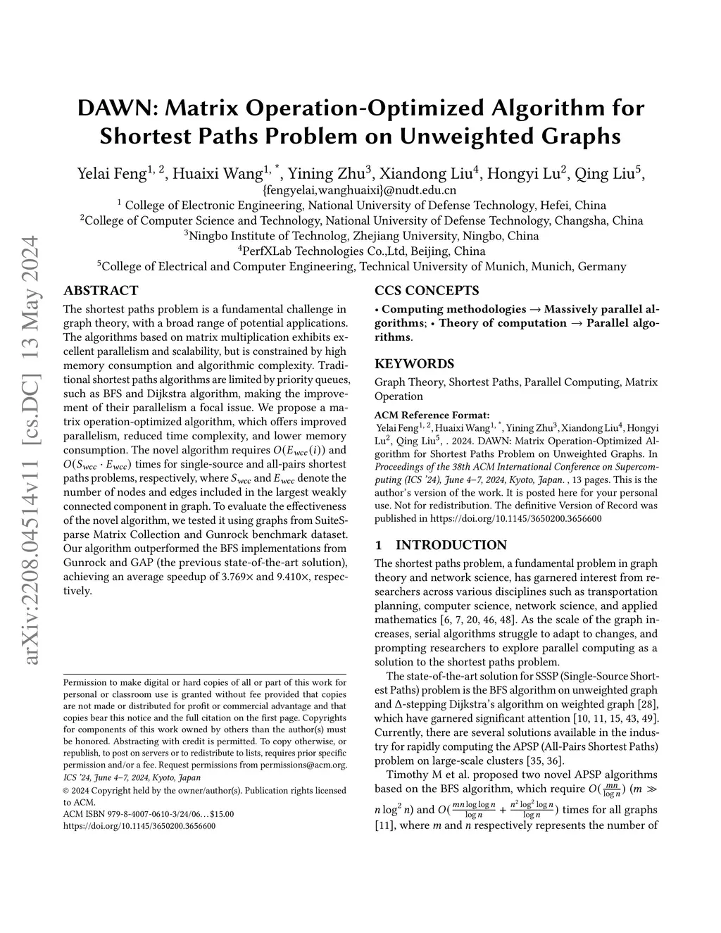 DAWN: Matrix Operation-Optimized Algorithm for Shortest Paths Problem on