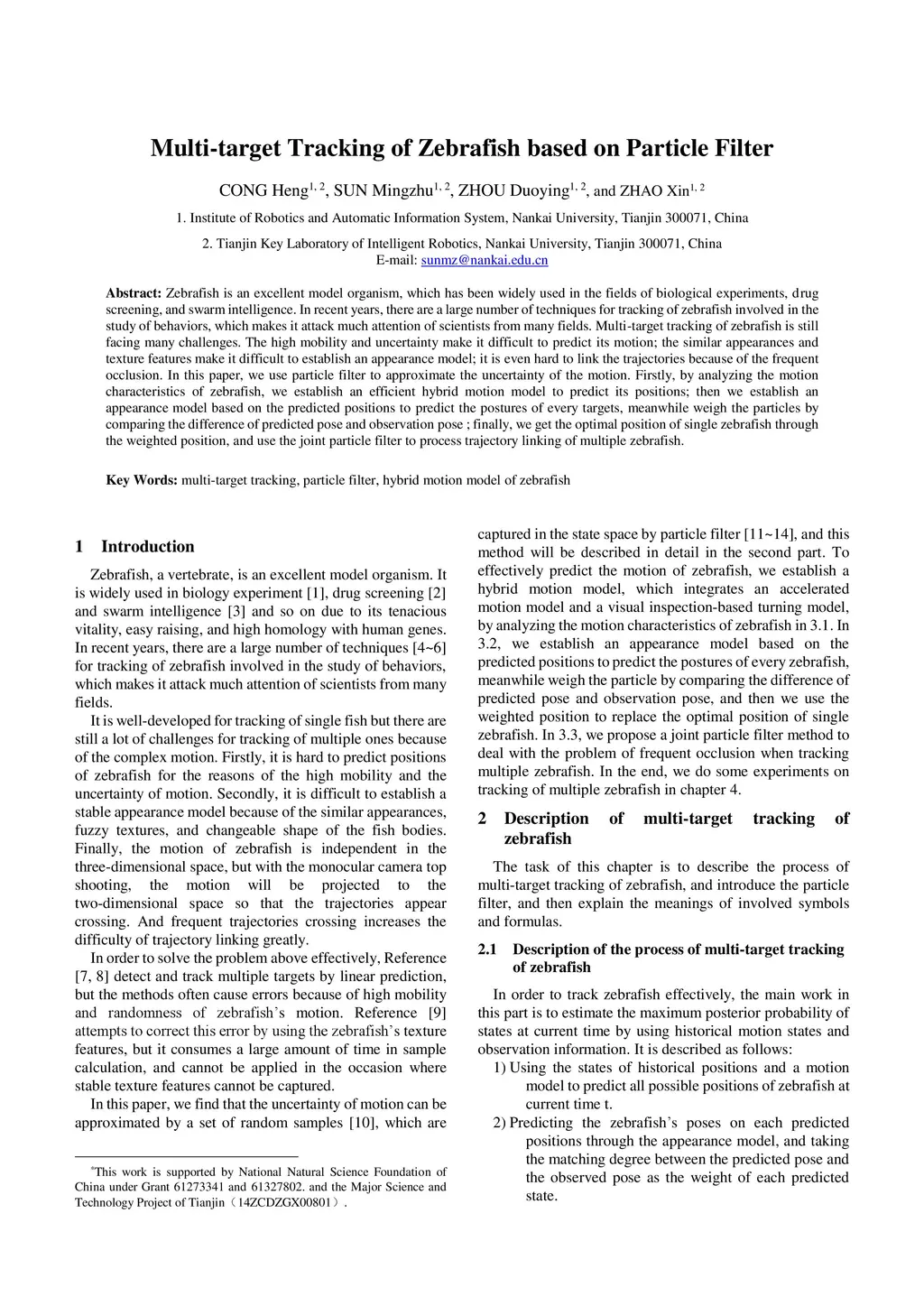 Multi-target Tracking of Zebrafish based on Particle Filter