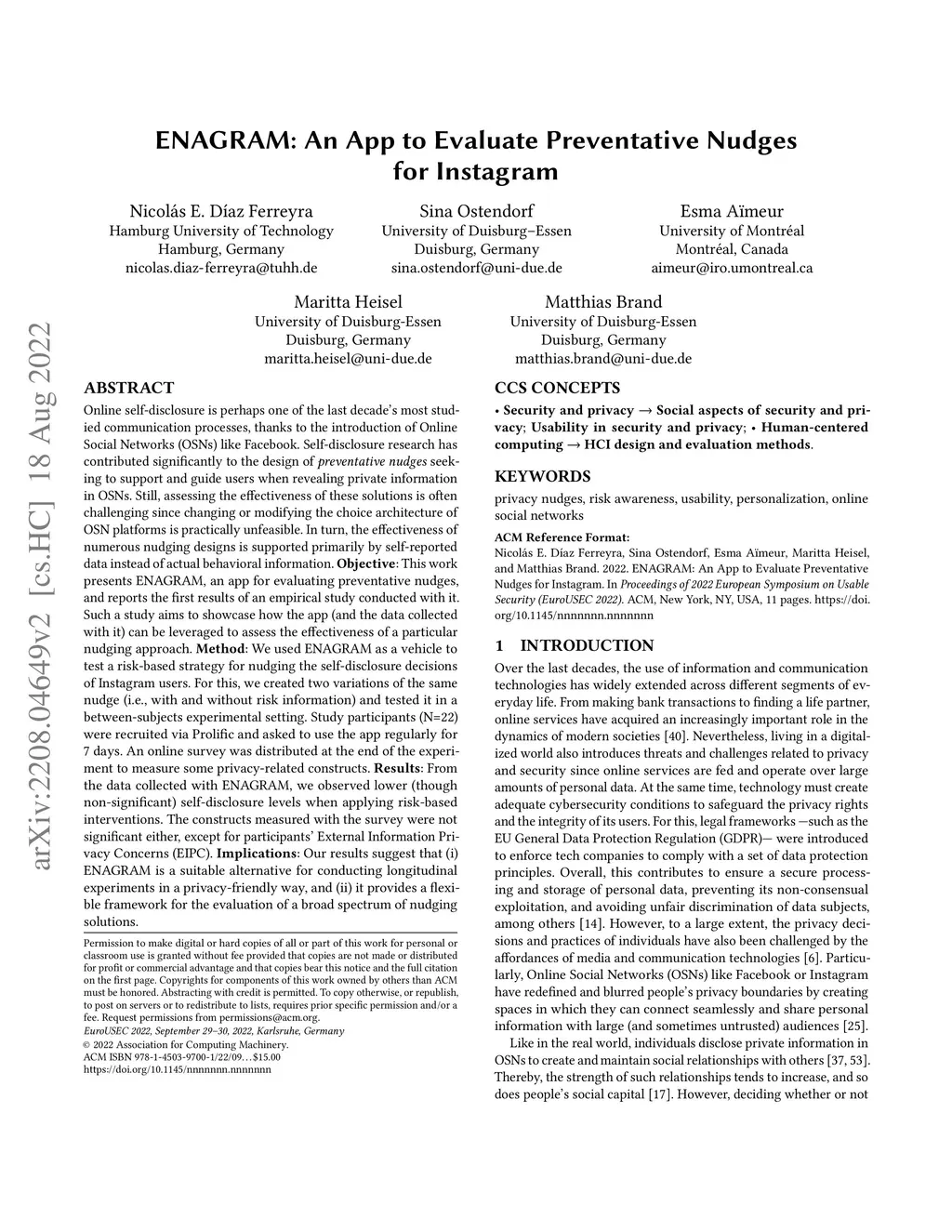 ENAGRAM: An App to Evaluate Preventative Nudges for Instagram