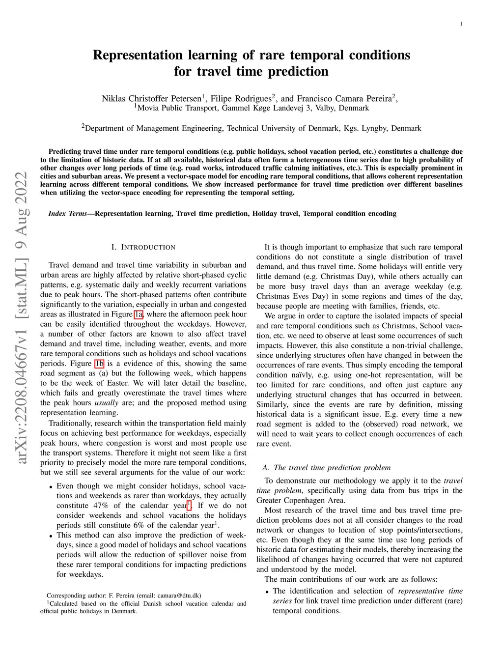 Representation learning of rare temporal conditions for travel time