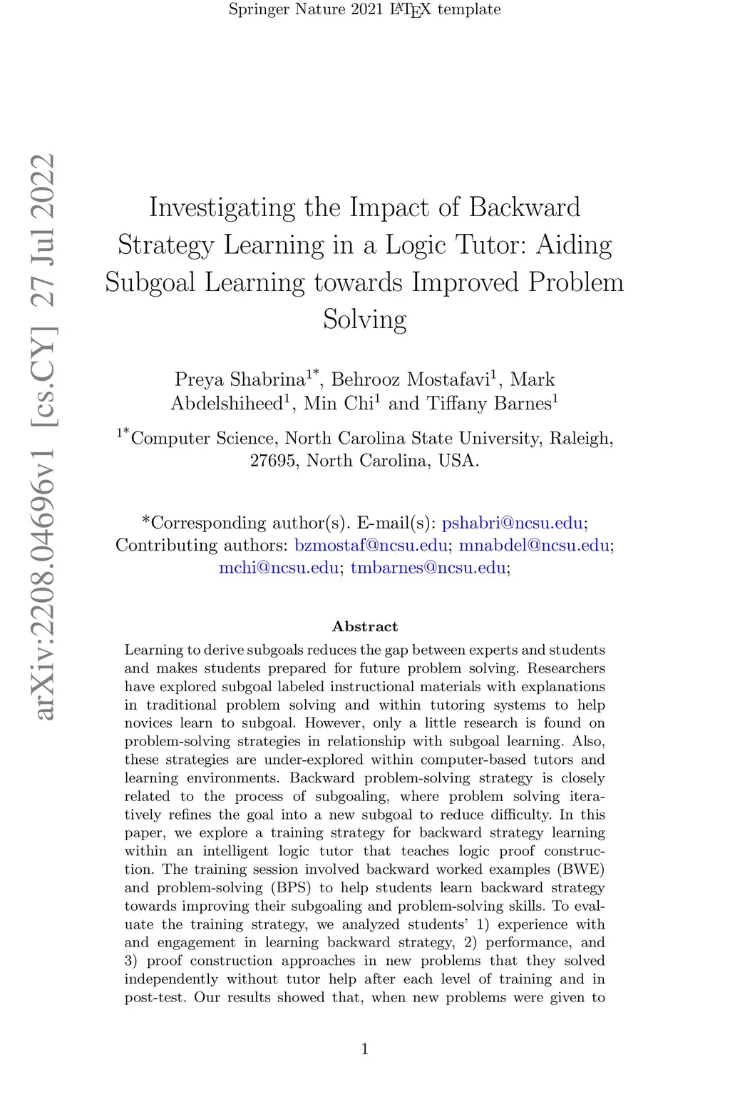 Investigating the Impact of Backward Strategy Learning in a Logic Tutor: