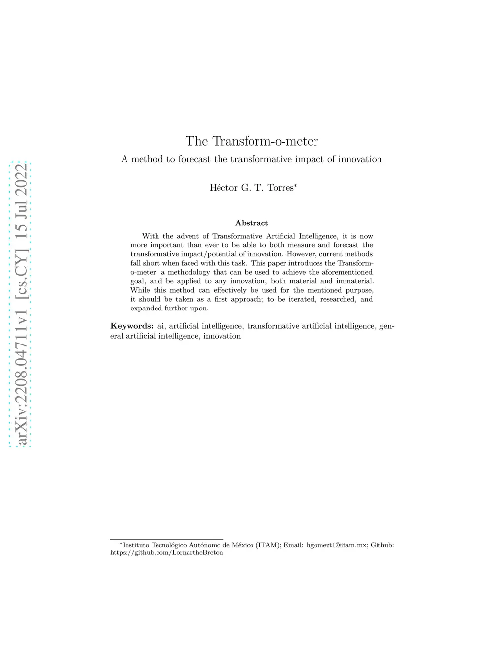 With the advent of Transformative Artificial Intelligence, it is now more important than ever to be able to both measure and forecast the transformative impact/potential of innovation. However, current methods fall short when faced with this task. This paper introduces the Transform-o-meter; a methodology that can be used to achieve the aforementioned goal, and be applied to any innovation, both material and immaterial. While this method can effectively be used for the mentioned purpose, it should be taken as a first approach; to be iterated, researched, and expanded further upon.