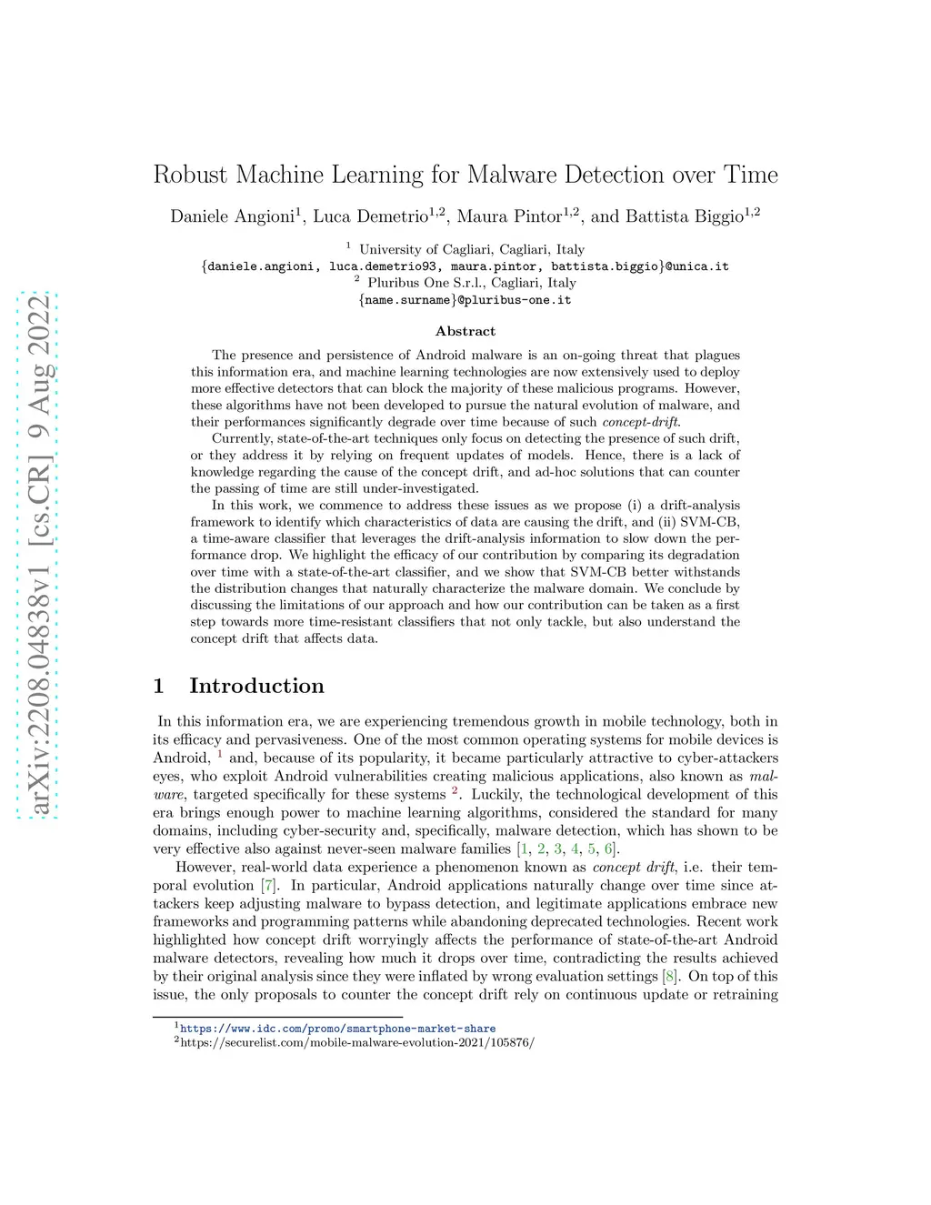 Robust Machine Learning for Malware Detection over Time