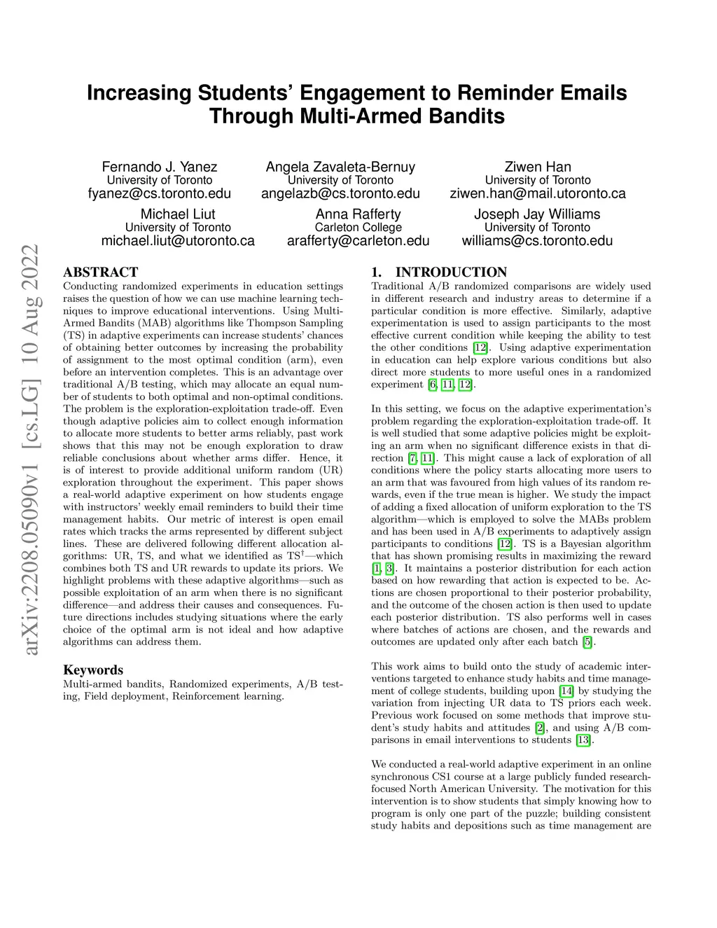 Increasing Students' Engagement to Reminder Emails Through Multi-Armed
