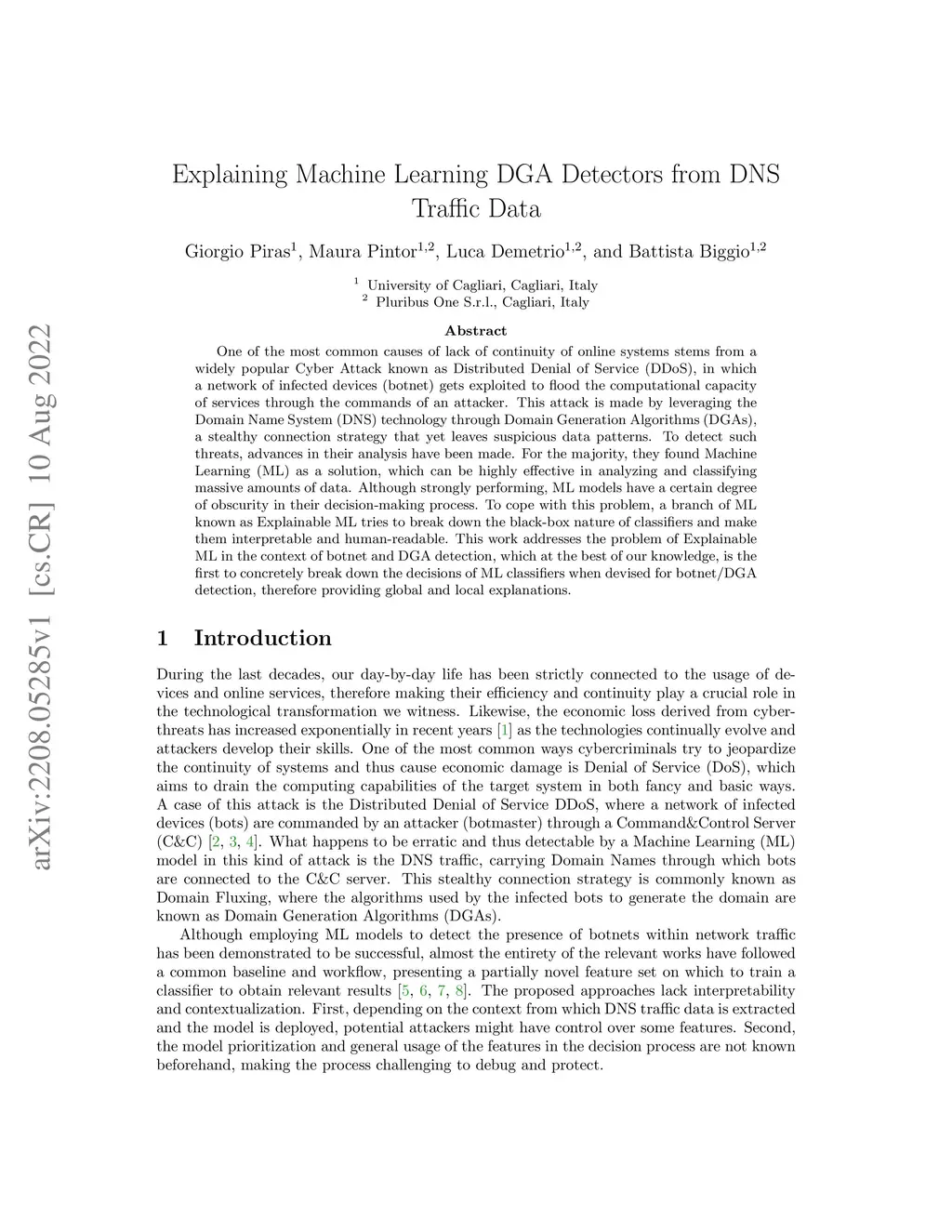One of the most common causes of lack of continuity of online systems stems from a widely popular Cyber Attack known as Distributed Denial of Service (DDoS), in which a network of infected devices (botnet) gets exploited to flood the computational capacity of services through the commands of an attacker. This attack is made by leveraging the Domain Name System (DNS) technology through Domain Generation Algorithms (DGAs), a stealthy connection strategy that yet leaves suspicious data patterns. To detect such threats, advances in their analysis have been made. For the majority, they found Machine Learning (ML) as a solution, which can be highly effective in analyzing and classifying massive amounts of data. Although strongly performing, ML models have a certain degree of obscurity in their decision-making process. To cope with this problem, a branch of ML known as Explainable ML tries to break down the black-box nature of classifiers and make them interpretable and human-readable. This work addresses the problem of Explainable ML in the context of botnet and DGA detection, which at the best of our knowledge, is the first to concretely break down the decisions of ML classifiers when devised for botnet/DGA detection, therefore providing global and local explanations.