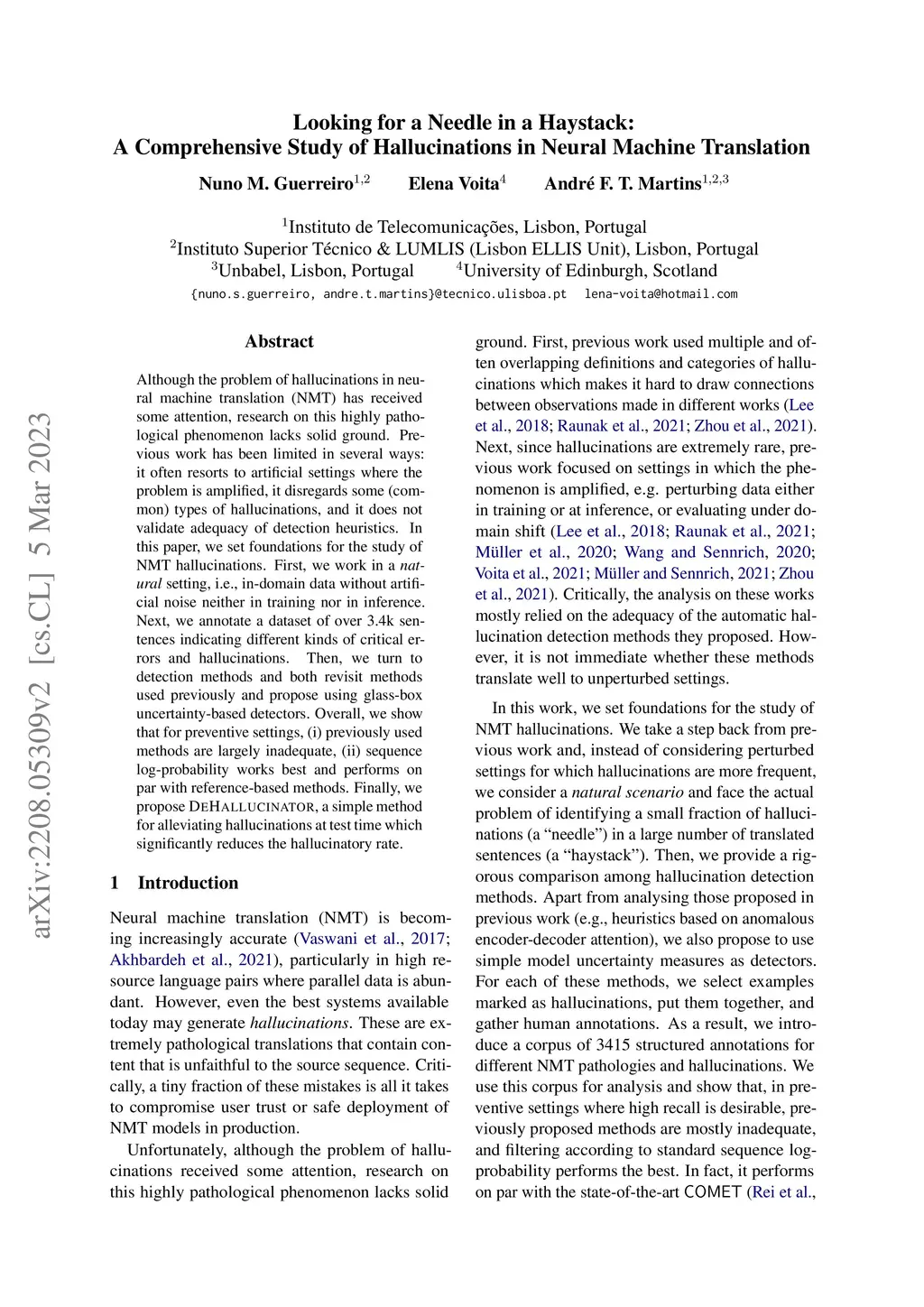 Although the problem of hallucinations in neural machine translation (NMT) has received some attention, research on this highly pathological phenomenon lacks solid ground. Previous work has been limited in several ways: it often resorts to artificial settings where the problem is amplified, it disregards some (common) types of hallucinations, and it does not validate adequacy of detection heuristics. In this paper, we set foundations for the study of NMT hallucinations. First, we work in a natural setting, i.e., in-domain data without artificial noise neither in training nor in inference. Next, we annotate a dataset of over 3.4k sentences indicating different kinds of critical errors and hallucinations. Then, we turn to detection methods and both revisit methods used previously and propose using glass-box uncertainty-based detectors. Overall, we show that for preventive settings, (i) previously used methods are largely inadequate, (ii) sequence log-probability works best and performs on par with reference-based methods. Finally, we propose DeHallucinator, a simple method for alleviating hallucinations at test time that significantly reduces the hallucinatory rate. To ease future research, we release our annotated dataset for WMT18 German-English data, along with the model, training data, and code.