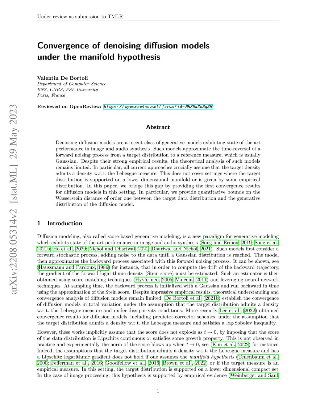Convergence of denoising diffusion models under the manifold hypothesis