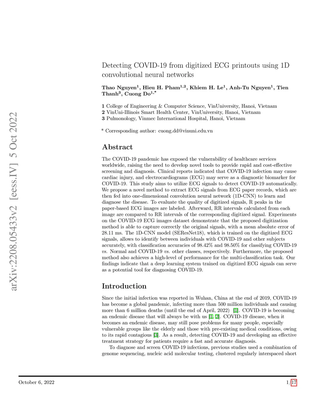 Detecting COVID-19 from digitized ECG printouts using 1D convolutional