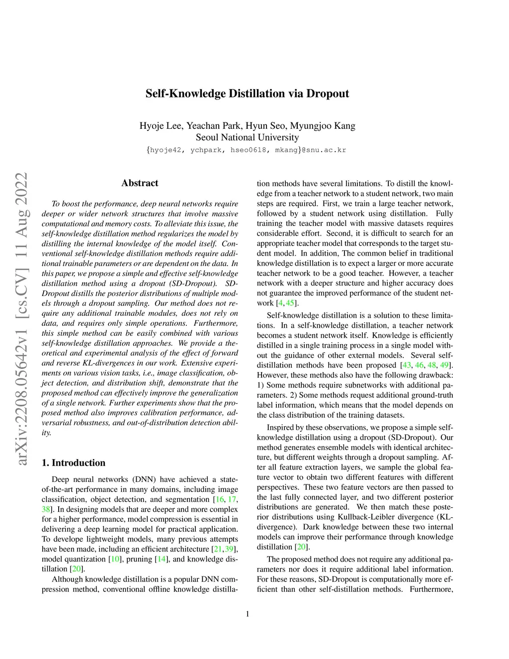 Self-Knowledge Distillation via Dropout