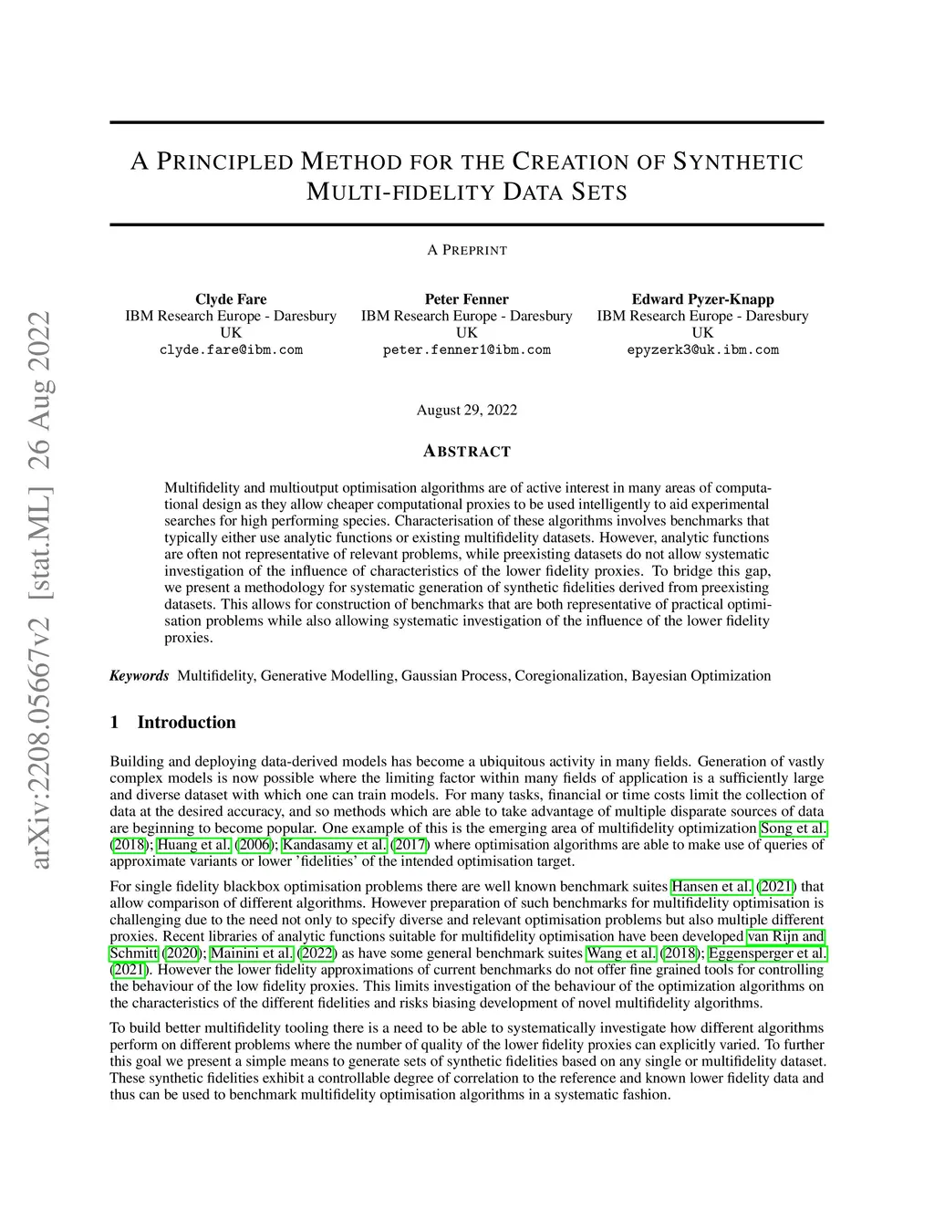 A Principled Method for the Creation of Synthetic Multi-fidelity Data
