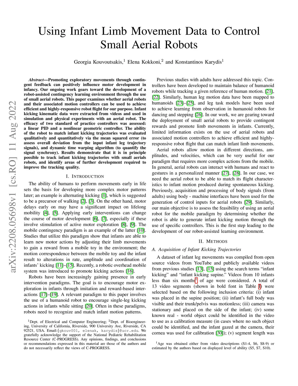 Using Infant Limb Movement Data to Control Small Aerial Robots
