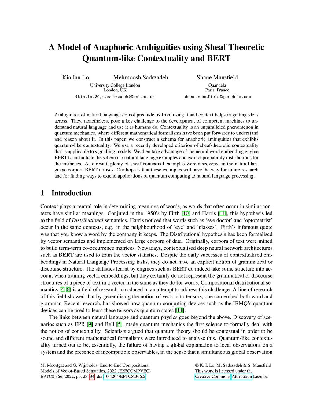 Contextuality and BERT