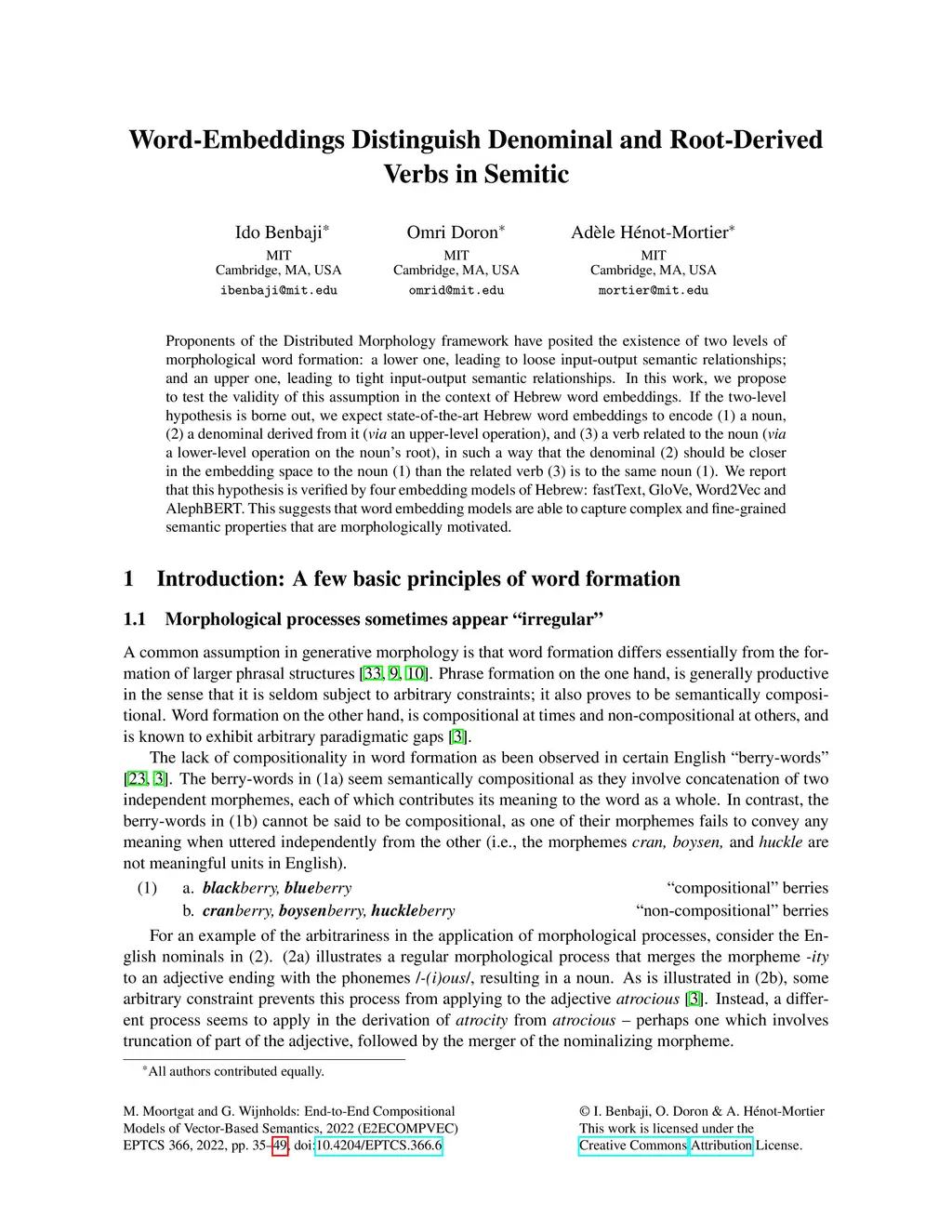 Word-Embeddings Distinguish Denominal and Root-Derived Verbs in Semitic
