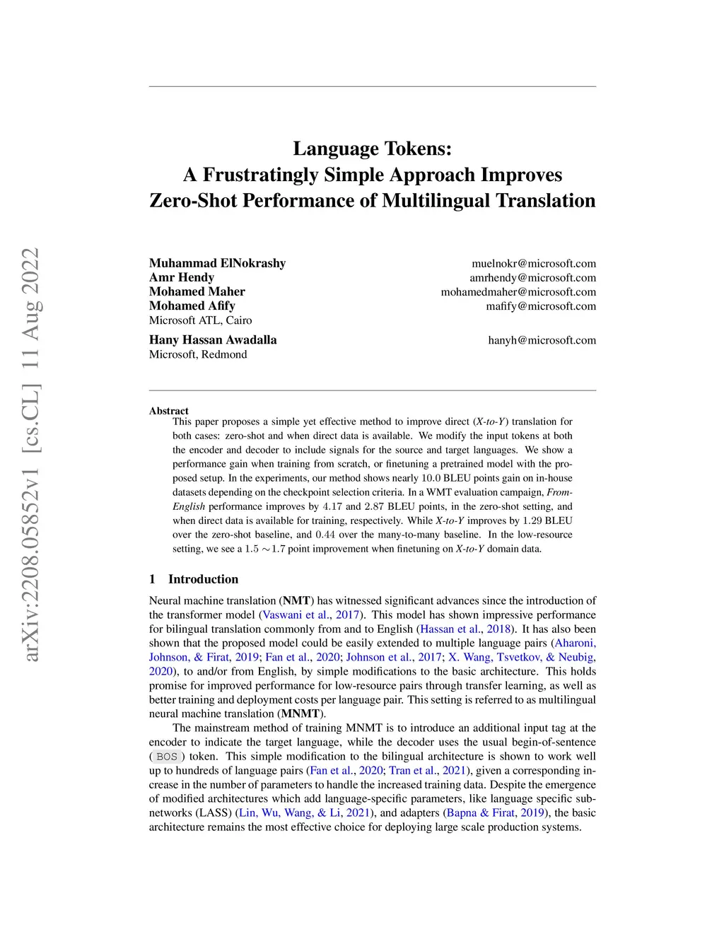 This paper proposes a simple yet effective method to improve direct (X-to-Y) translation for both cases: zero-shot and when direct data is available. We modify the input tokens at both the encoder and decoder to include signals for the source and target languages. We show a performance gain when training from scratch, or finetuning a pretrained model with the proposed setup. In the experiments, our method shows nearly 10.0 BLEU points gain on in-house datasets depending on the checkpoint selection criteria. In a WMT evaluation campaign, From-English performance improves by 4.17 and 2.87 BLEU points, in the zero-shot setting, and when direct data is available for training, respectively. While X-to-Y improves by 1.29 BLEU over the zero-shot baseline, and 0.44 over the many-to-many baseline. In the low-resource setting, we see a 1.5~1.7 point improvement when finetuning on X-to-Y domain data.