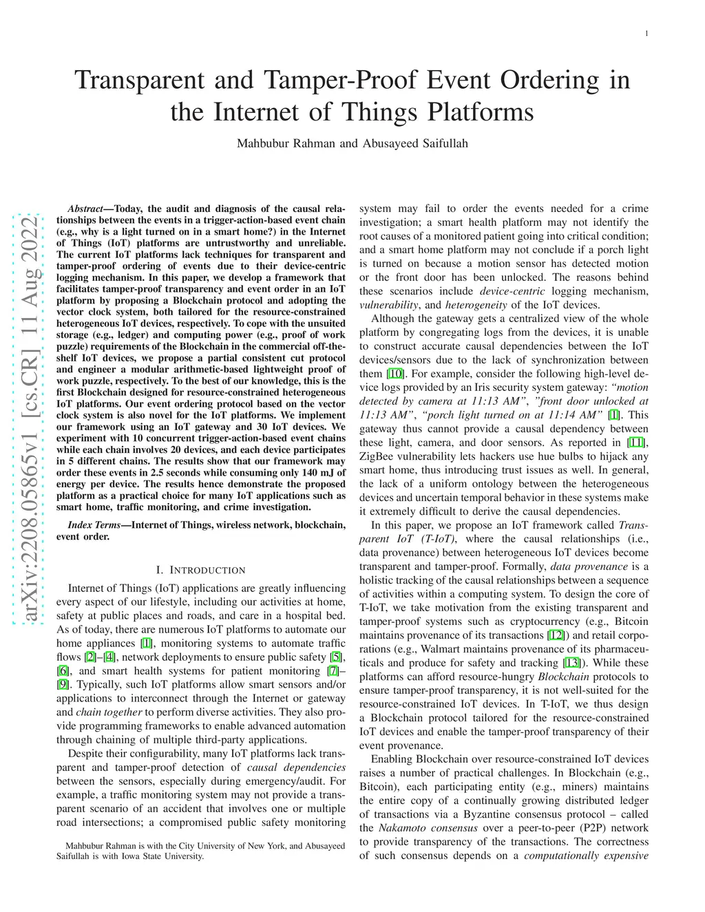 Transparent and Tamper-Proof Event Ordering in the Internet of Things