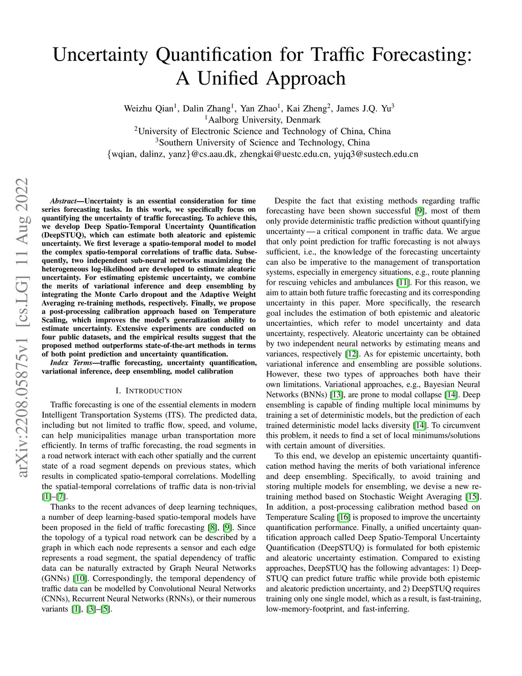 Uncertainty Quantification for Traffic Forecasting: A Unified Approach